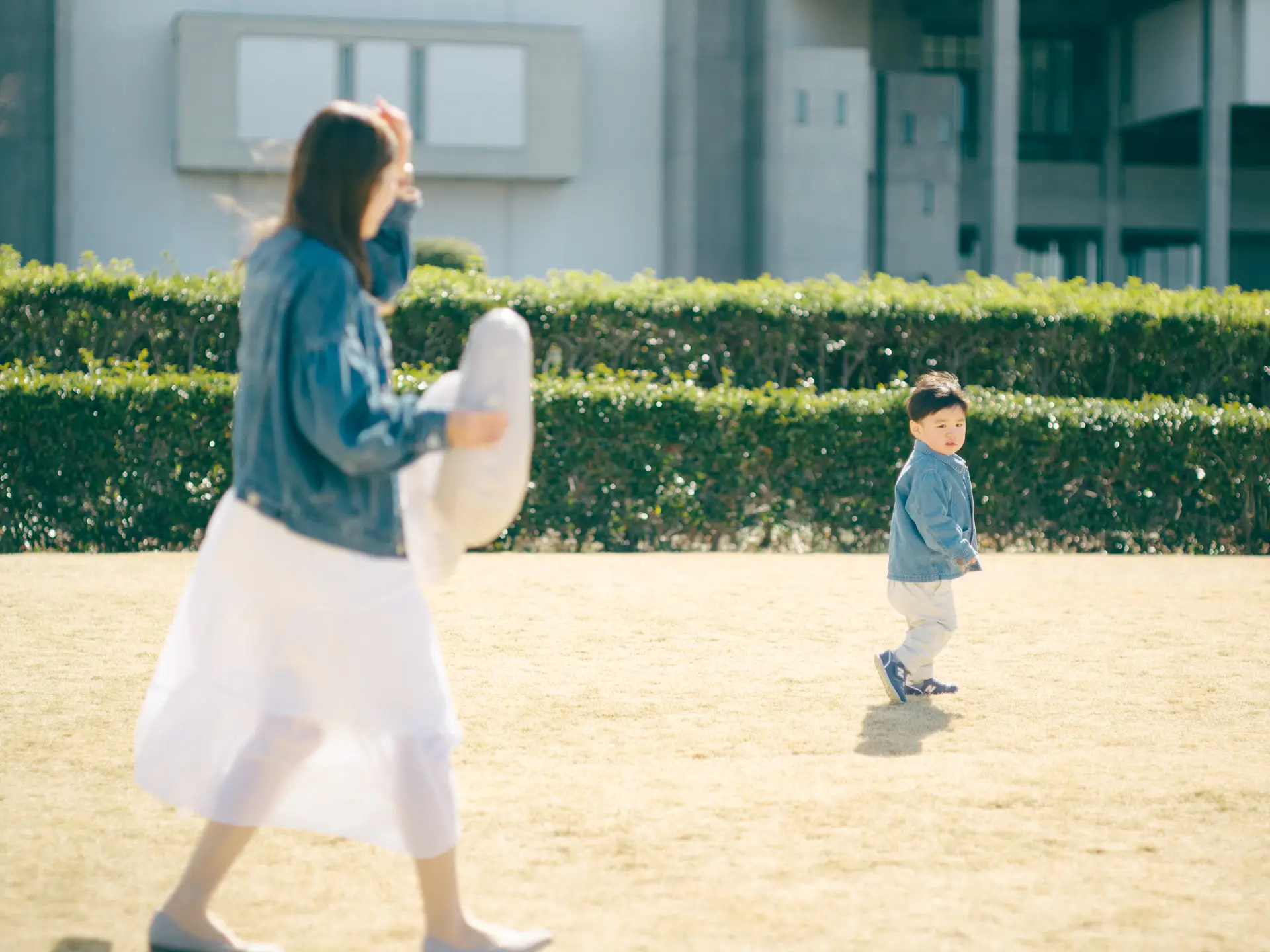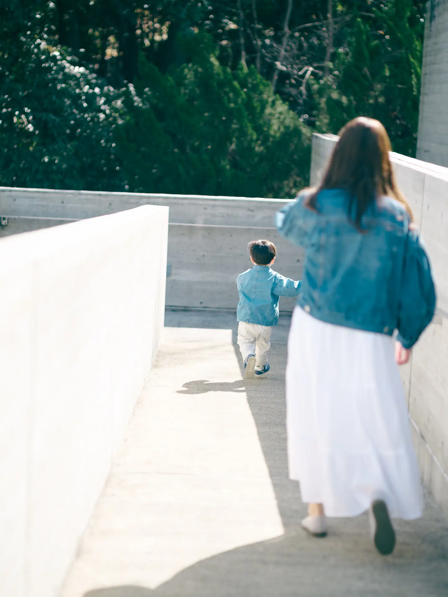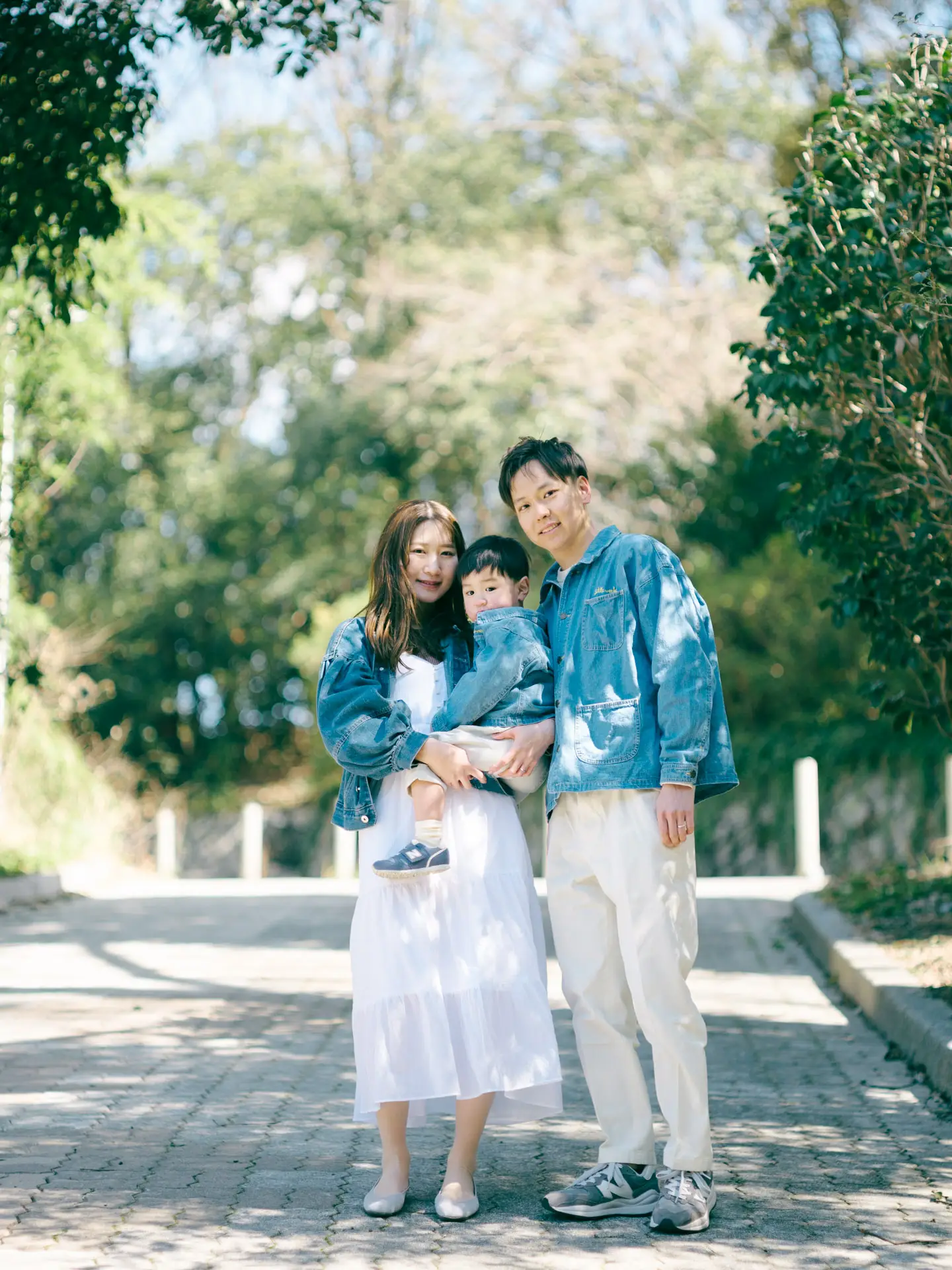 歩けるようになってからいろんなものが気になって仕方ない息子さん。この日もちょっと目を離すとあっちにこっちに大暴れ。そんな動き回れるようになった息子さんの元気な姿をたくさん撮って欲しいとご要望いただきました。また、今回撮影させていただいた場所はお二人の前撮りスポットとのこと。そんな思い出の地を今回は3人で巡りながら、道中の様子も含めて撮影させていただきました。