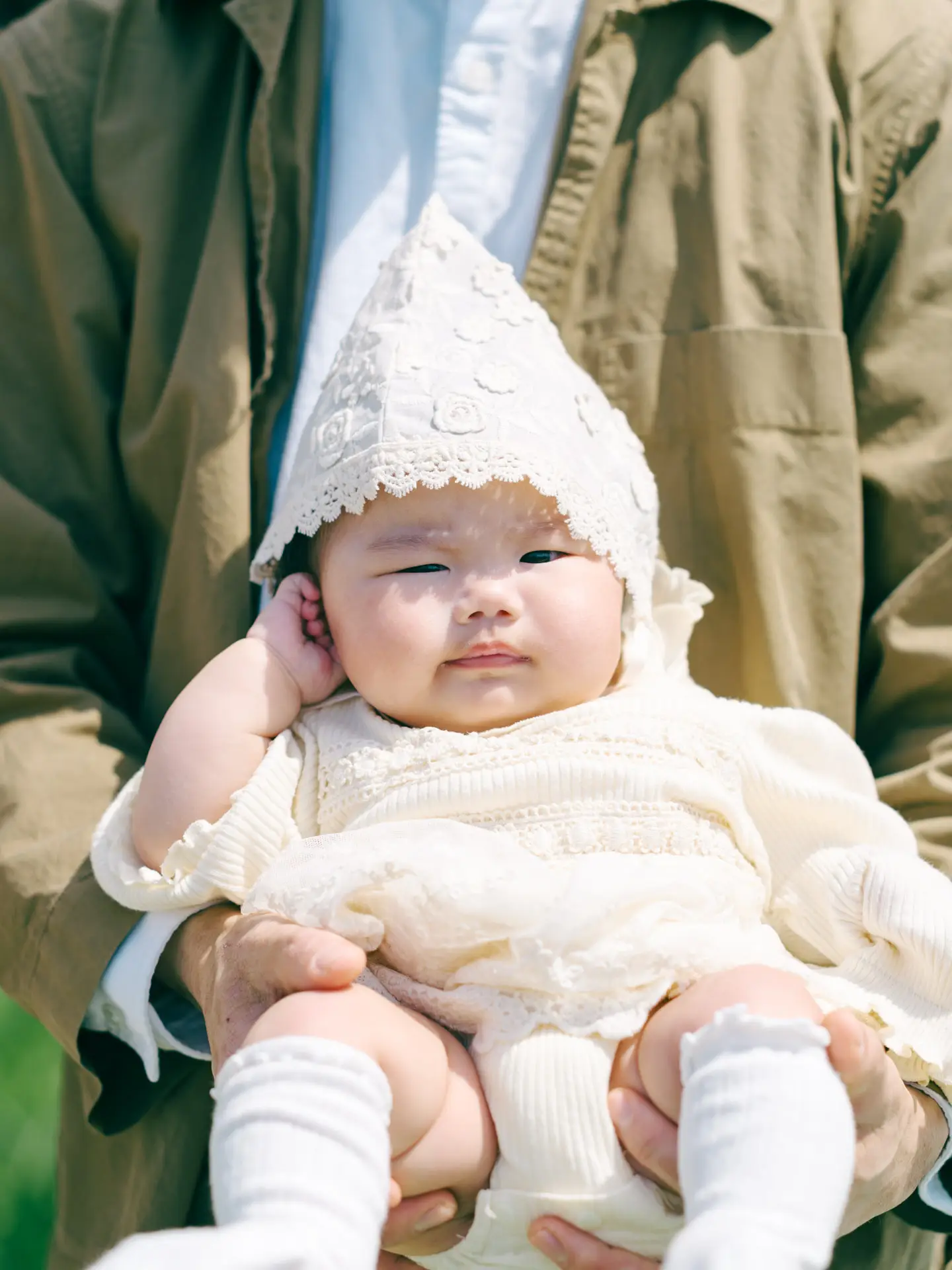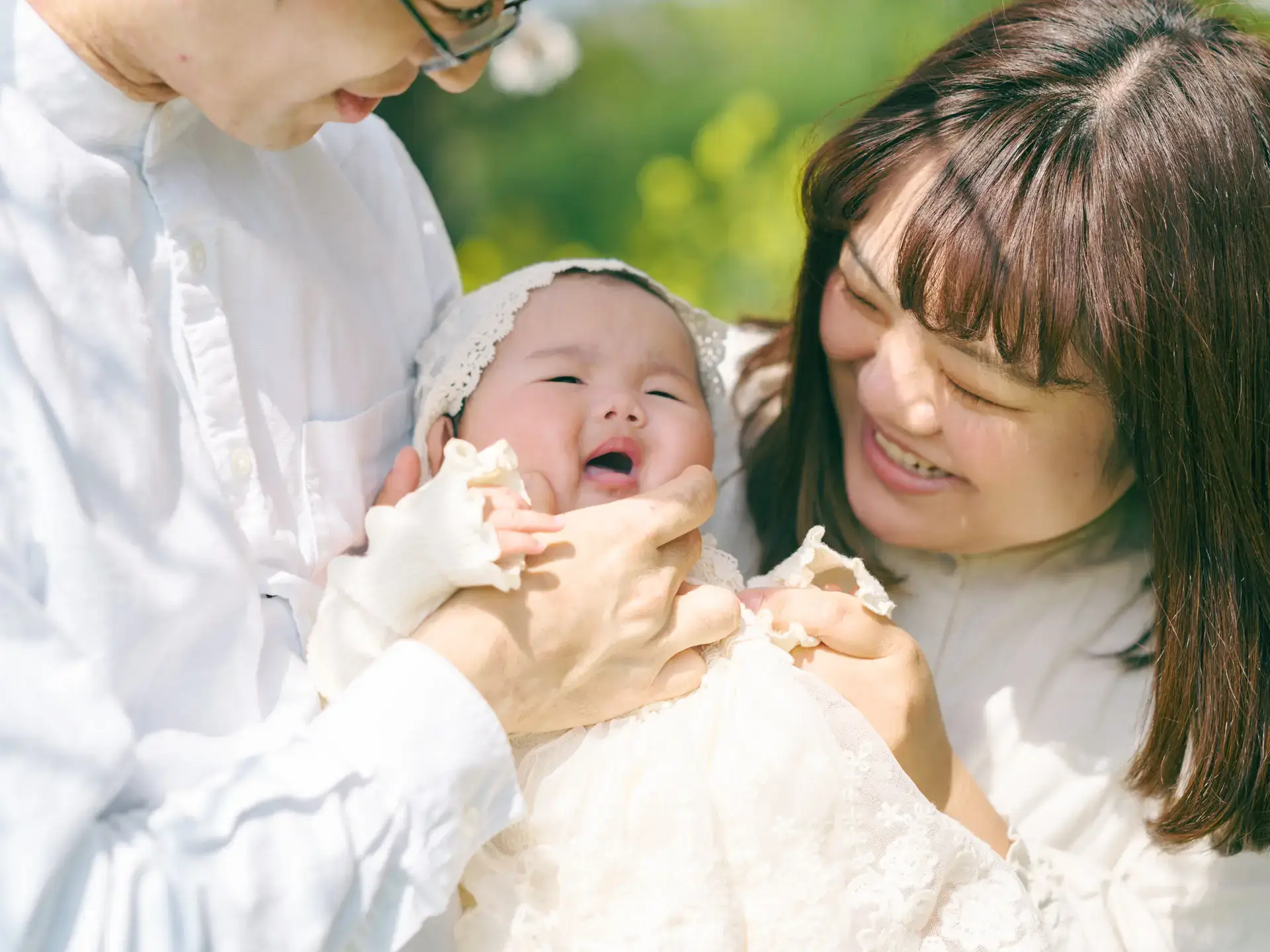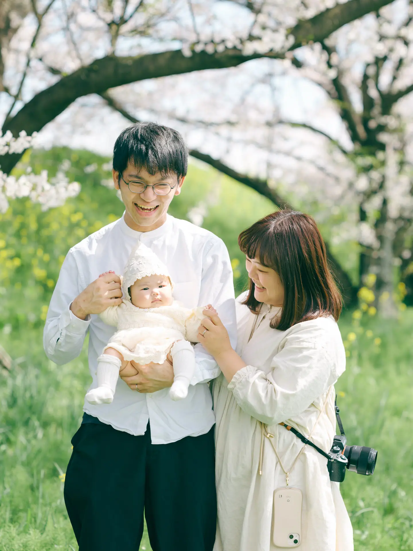 ご入籍される前からお写真を撮らせていただいているお二人が、この度女の子が誕生して3人家族に。いつ見ても笑顔あふれるお二人でしたが、本日もお子様を眺めては頬が緩みっぱなしでした。一方お子様はなかなか笑顔を見せてくれず…。不貞腐れた顔もきっと数年後にはいい思い出になっていることでしょう(笑)